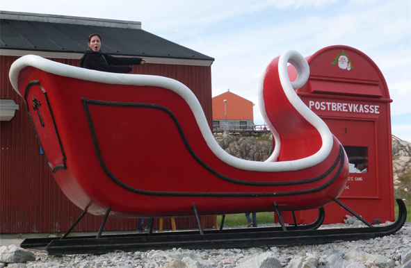 In Ilulissat, Grönland, stellt Santa Claus seinen Schlitten ab und empfängt Post.