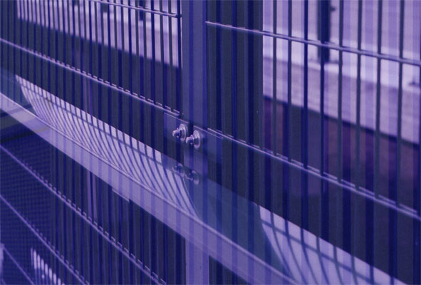 Sazar führte Eos in den benachbarten Raum. Dort waren Computer und Monitore an den Wänden befestigt. Davor waren stählerne Tische auf dem Boden festgeschraubt, auf denen Tastaturen und Mäuse lagen. In hohen Regalschränken wurden Datenträger aufbewahrt. Eine Wand in dem Raum war aus Glas. Dahinter befand sich ein Lichtschacht. Graues Tageslicht rieselte über die Schachtwände aus grobem Beton.