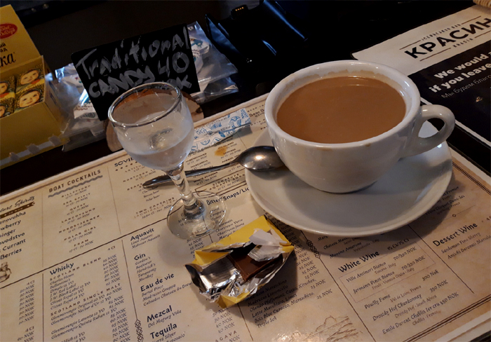 KAFFEE MIT MILCH, DAZU WODKA UND SCHOKOLADE, BITTE.