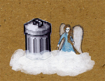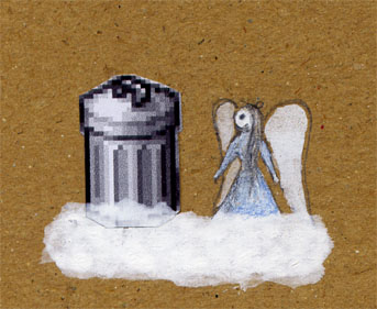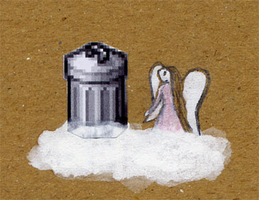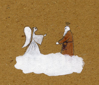 Nun wird Sulo neben einen anderen Engel auf eine Wolke gesetzt.