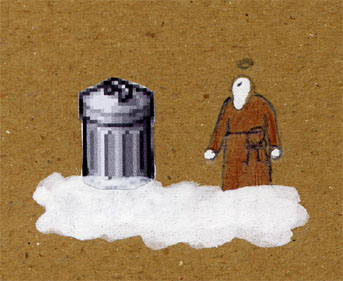 "Hier schadest du wenigstens keinem", kommt eine Stimme vom Himmel, mit Blitz und Donner. "Sei froh, daß ich dich nicht zur Hölle schicke."