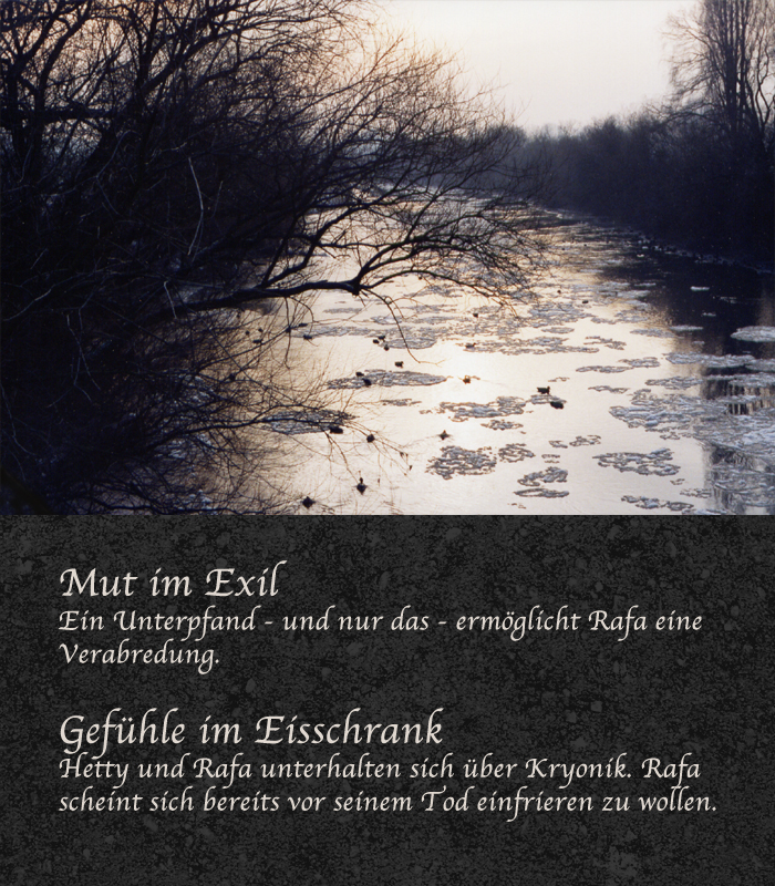 Jemand im "Elizium" wußte, daß Rafa ins "Nachtbarhaus" gegangen war. Saara dachte sich, daß Rafa dort auf seinen Zug nach SHG. warten wollte. Der fuhr kurz vor sieben.
